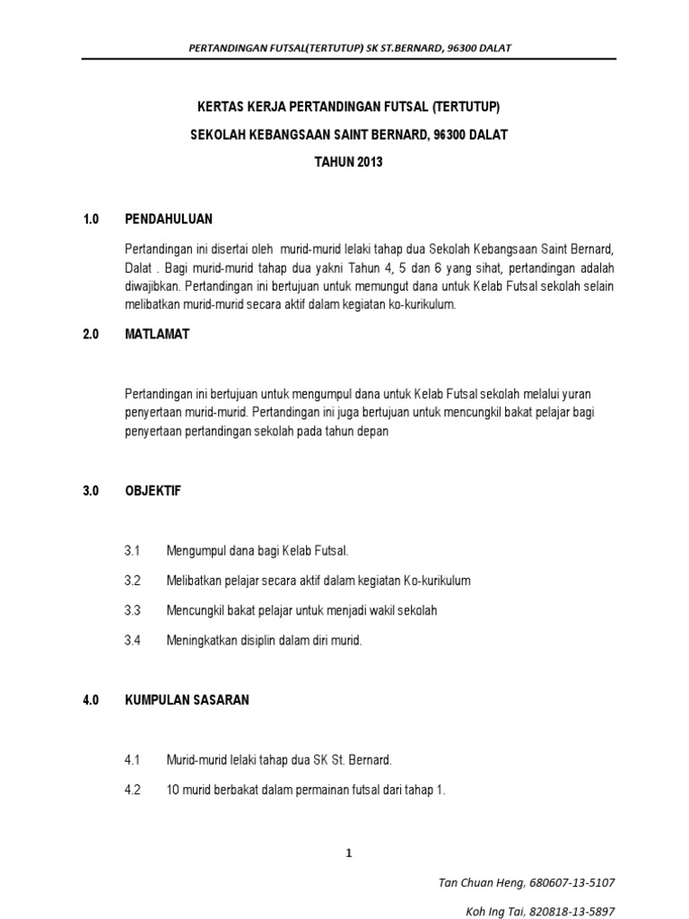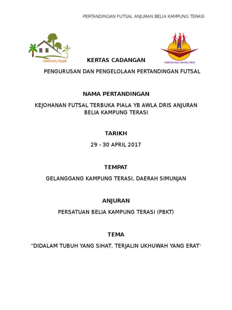 Kertas Kerja Pertandingan Futsal Ftsm Piala Dekan Tarikh 23 Mei 2015 Tempat Vrox Sport Center Bangi Selangor Pdf Download Gratis
